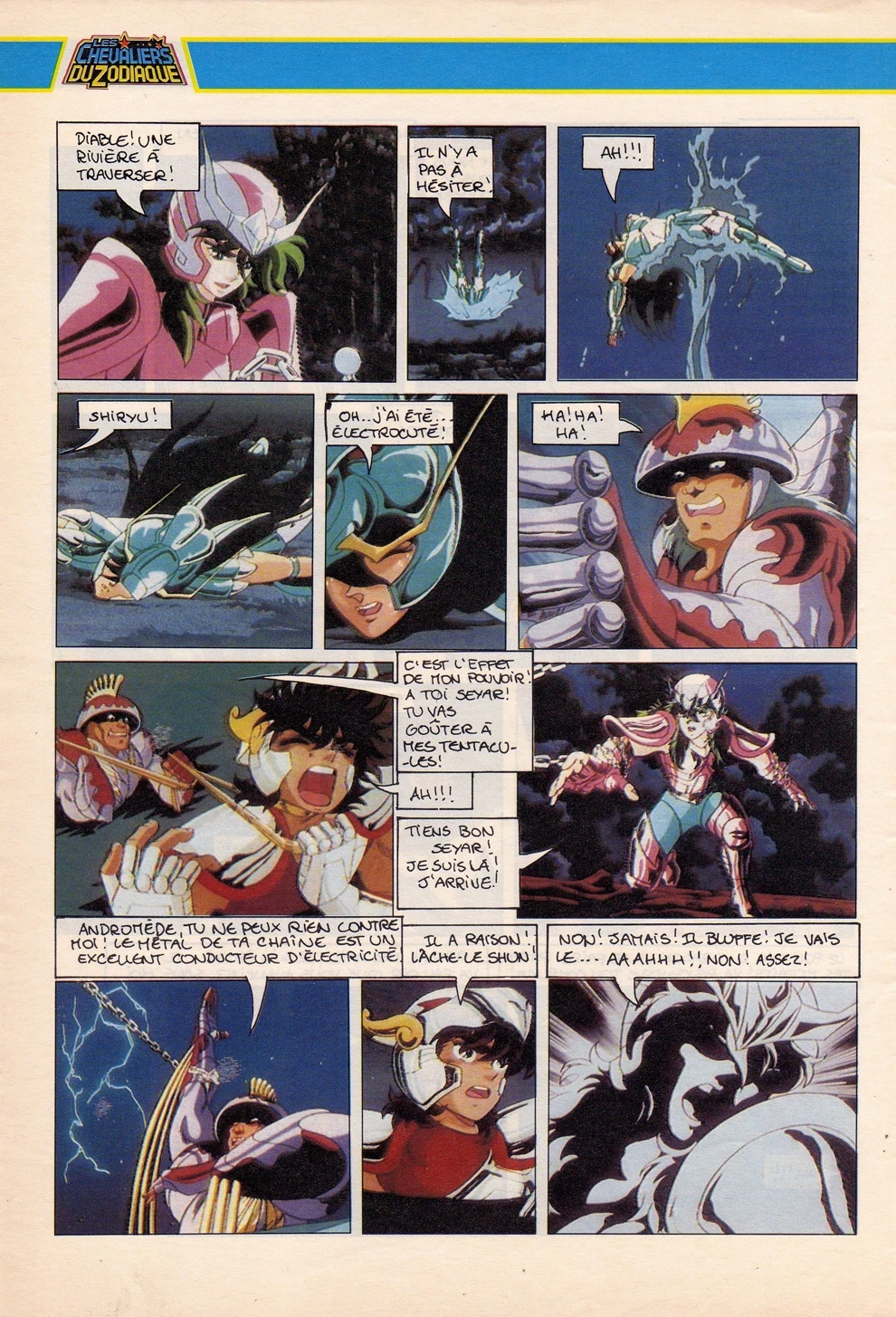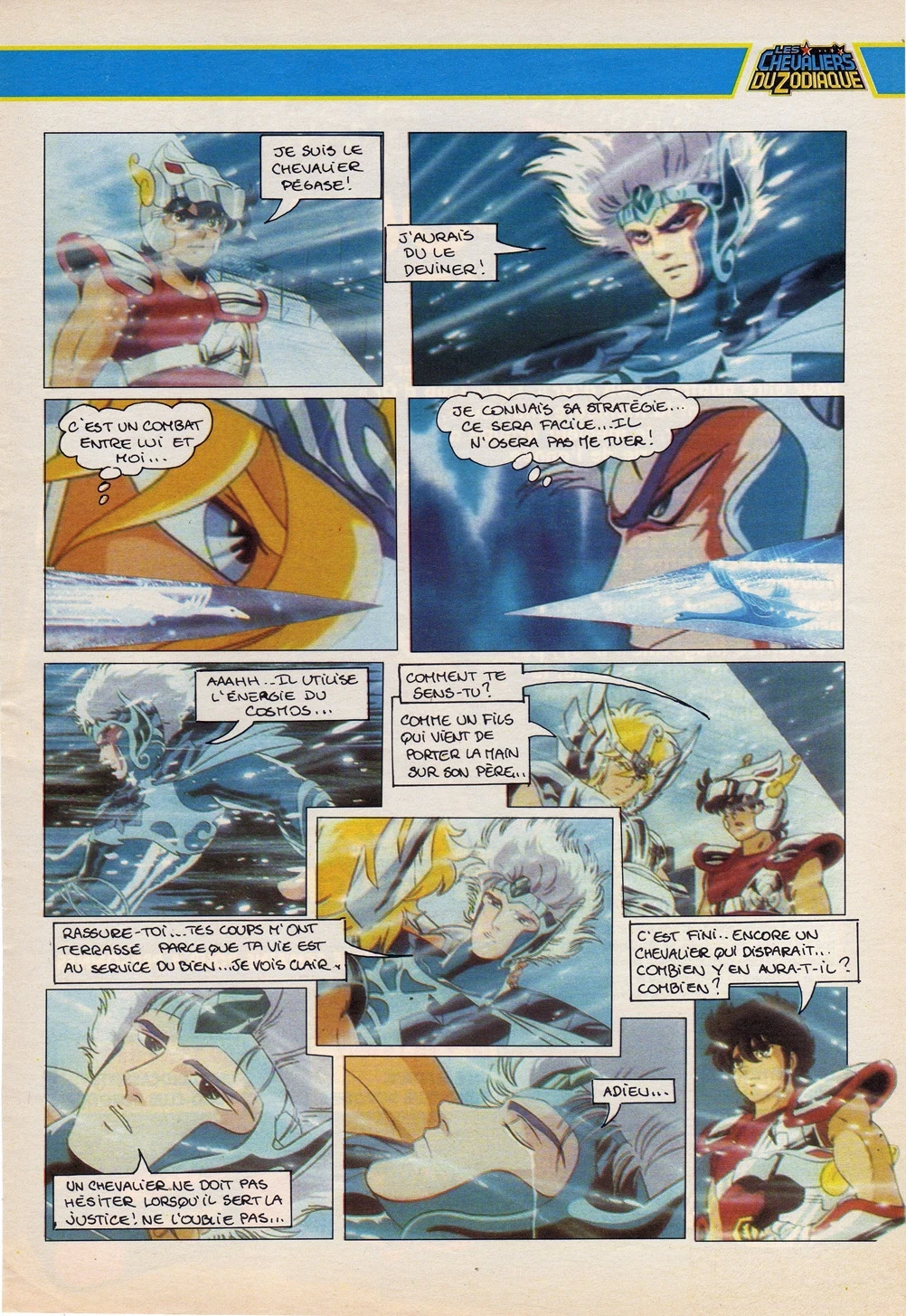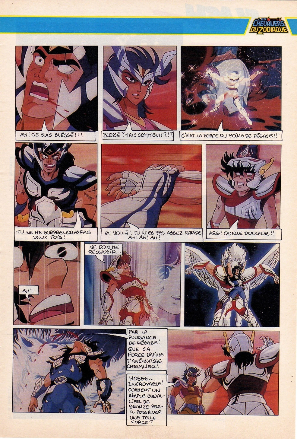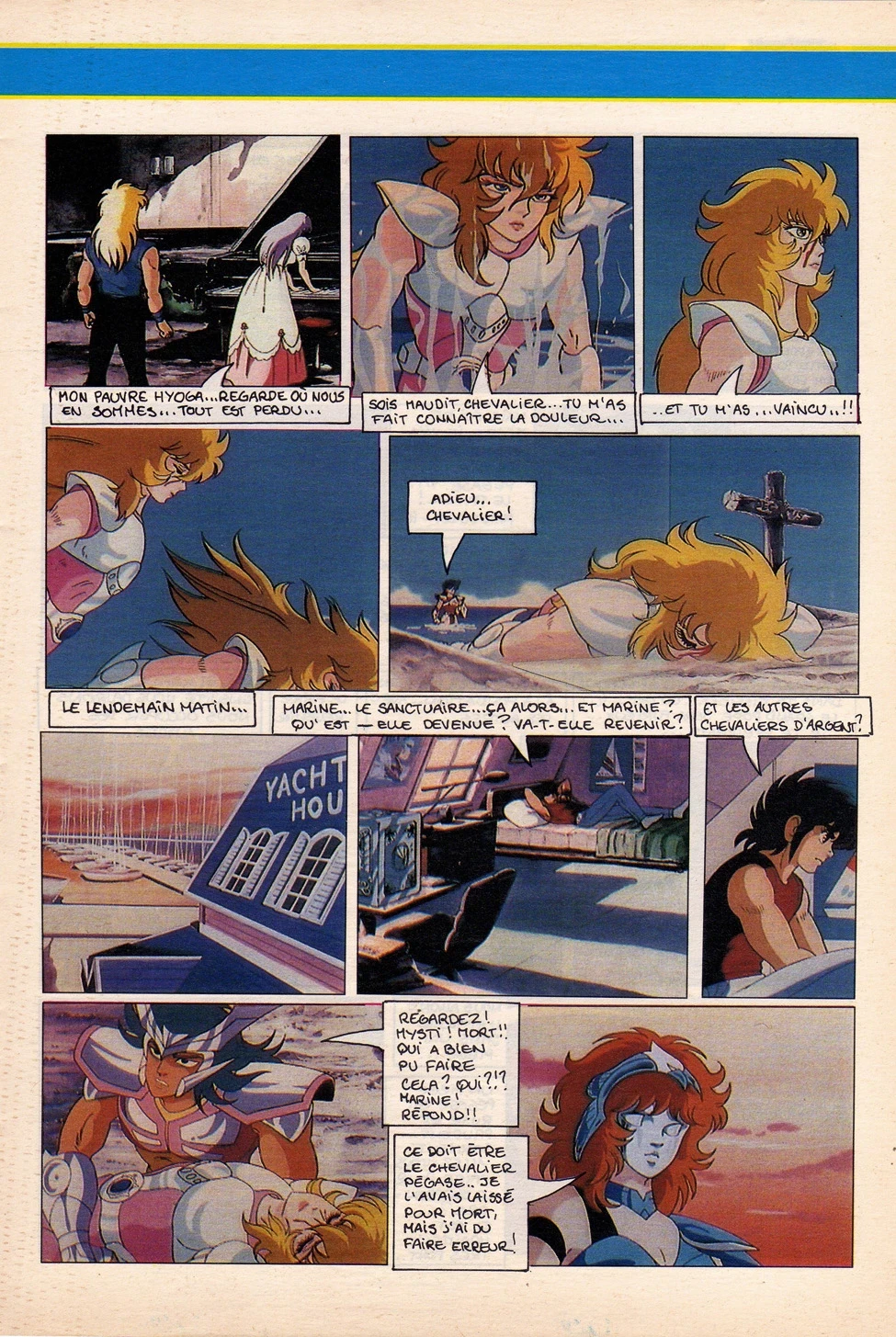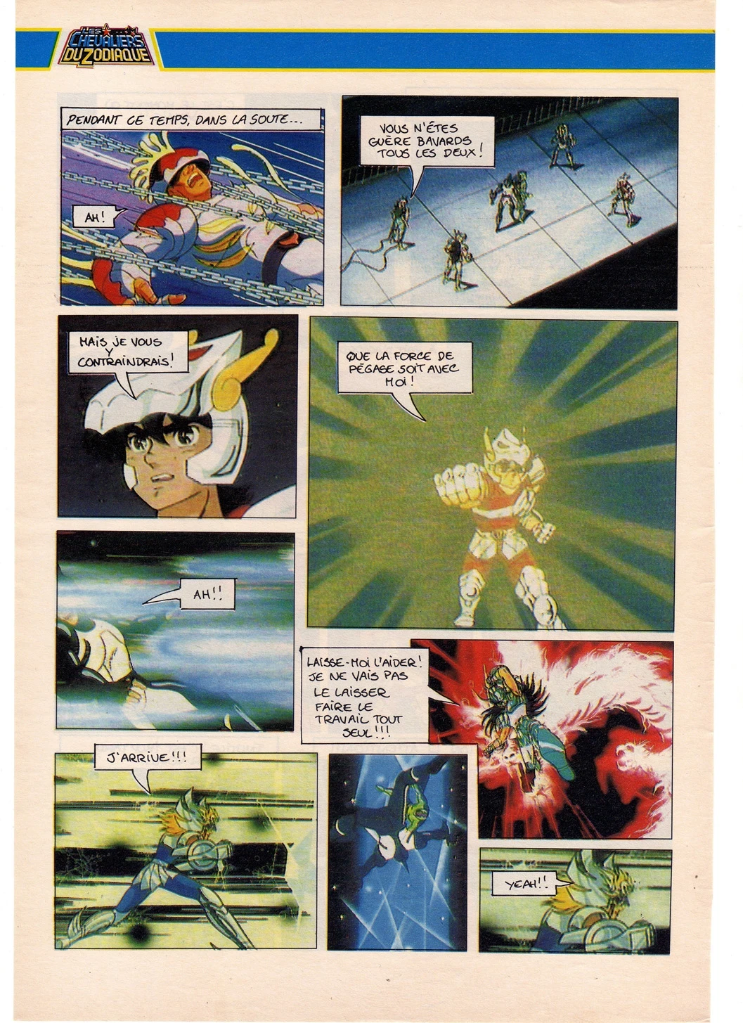 Puis le chevalier Ennetsu attaque Shun, Tatsumi et Saori, avant d’être vaincu par le chevalier du Phénix. Les deux derniers chapitres relatent les combats de Seiya contre Mysti du Lézard et Moses de la Baleine blanche. La dernière case prépare l’affrontement du chevalier de Pégase avec Astérion.