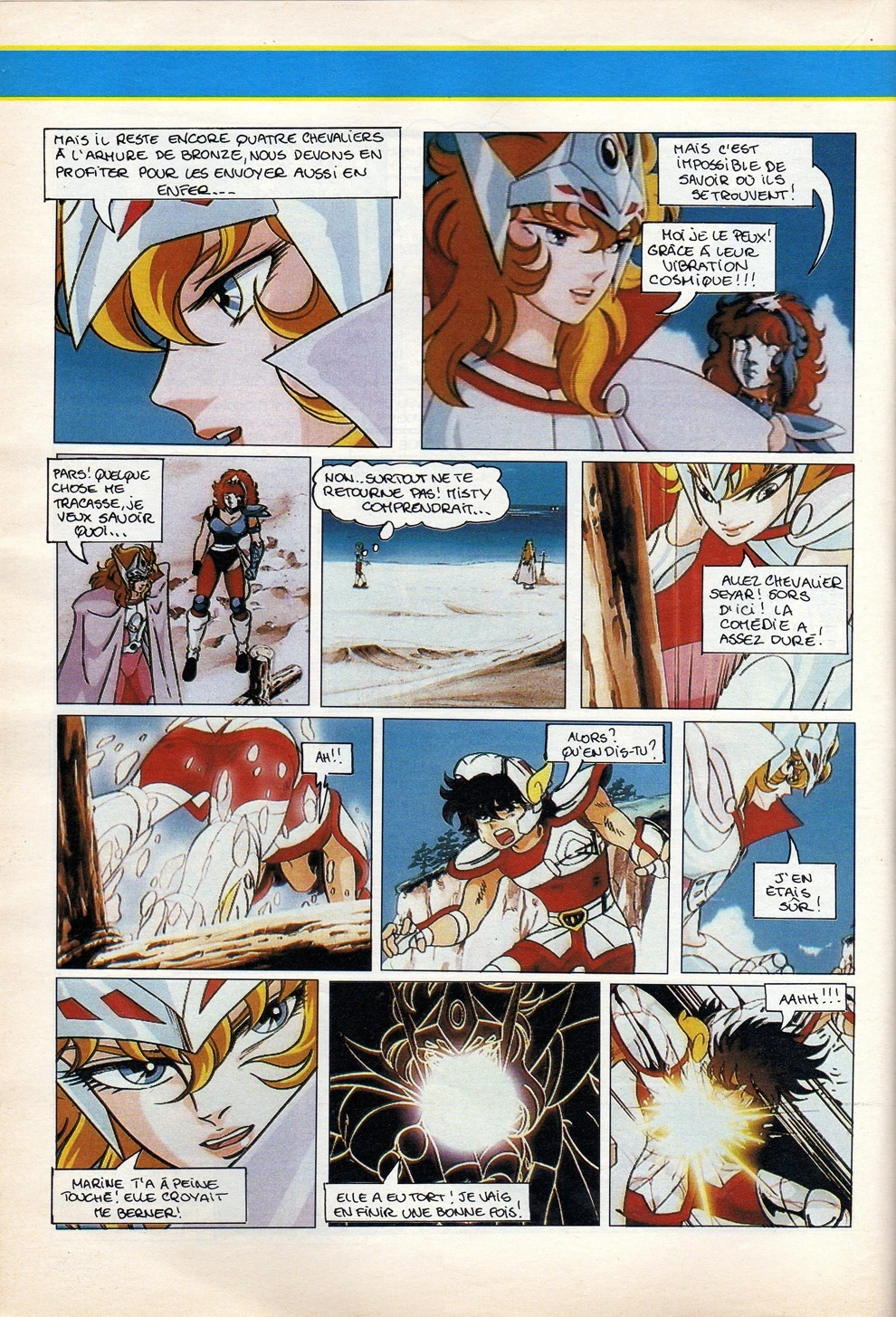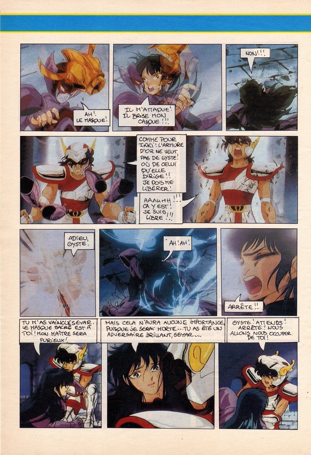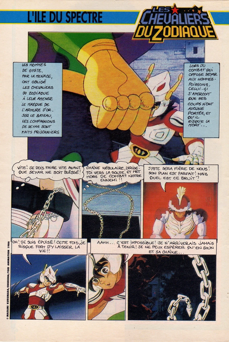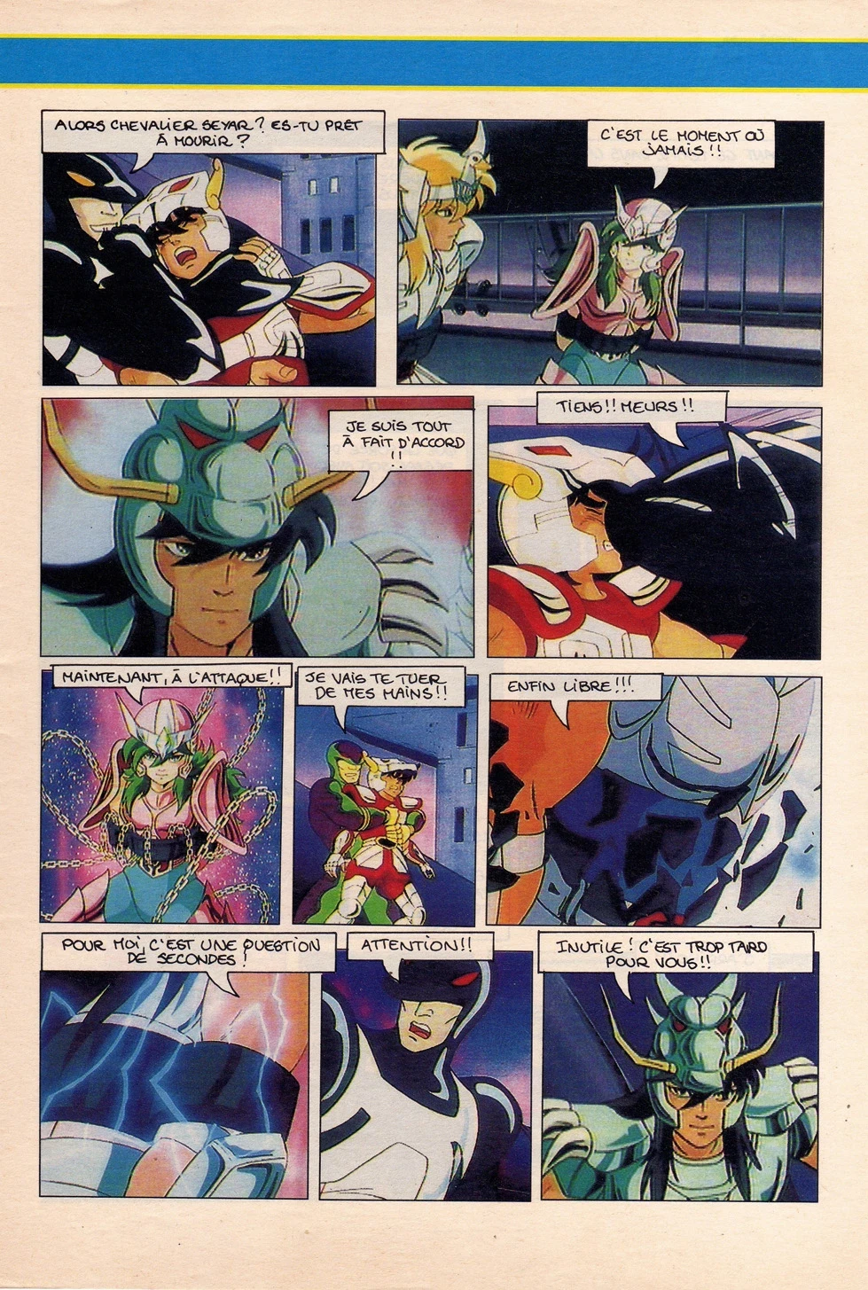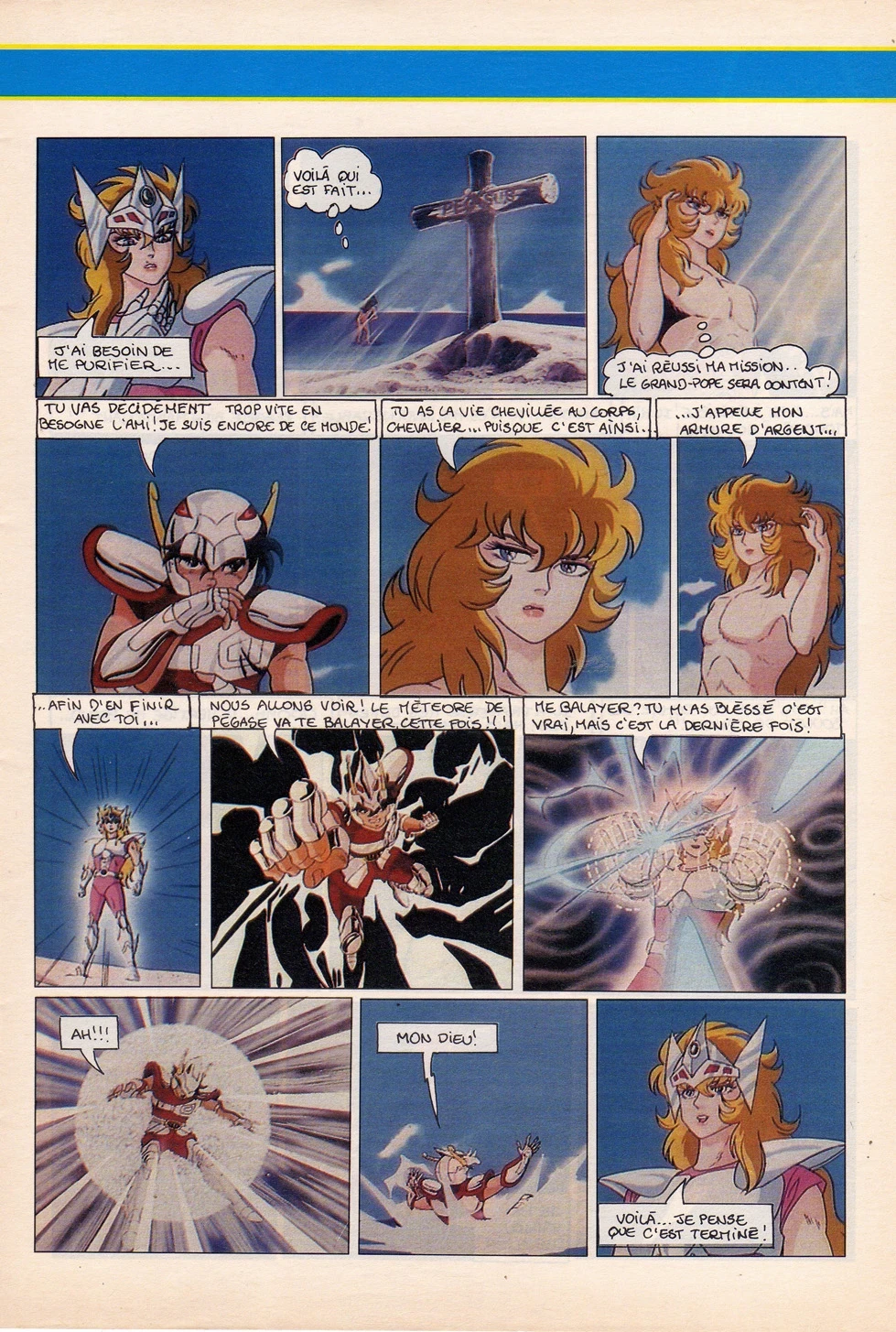 Puis le chevalier Ennetsu attaque Shun, Tatsumi et Saori, avant d’être vaincu par le chevalier du Phénix. Les deux derniers chapitres relatent les combats de Seiya contre Mysti du Lézard et Moses de la Baleine blanche. La dernière case prépare l’affrontement du chevalier de Pégase avec Astérion.