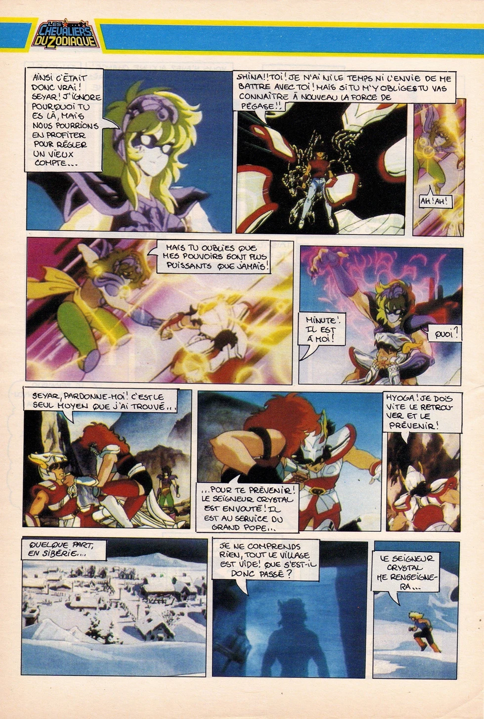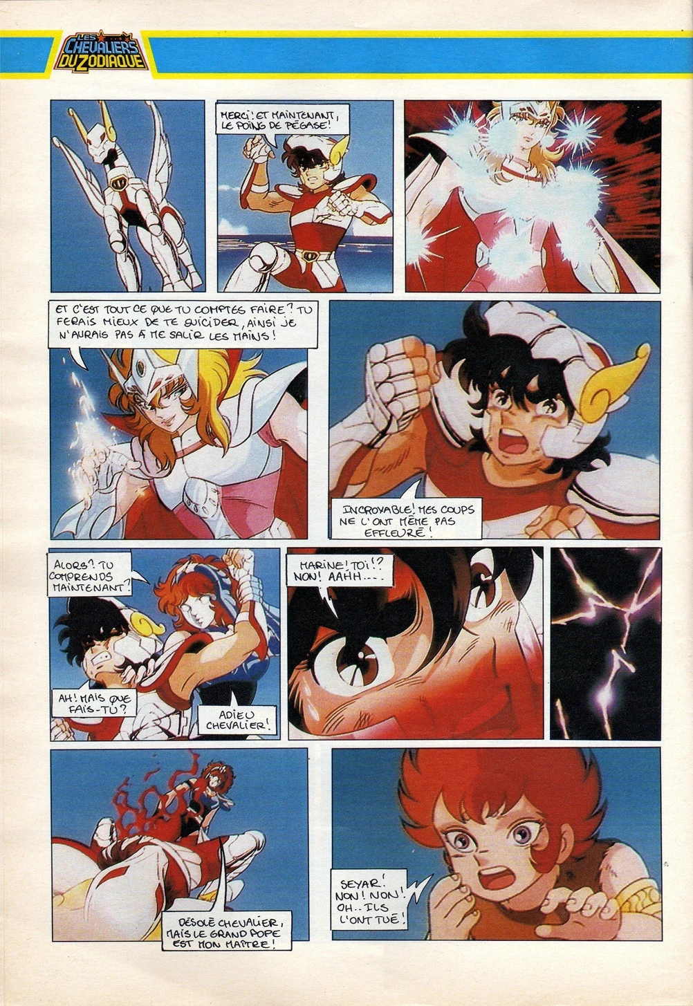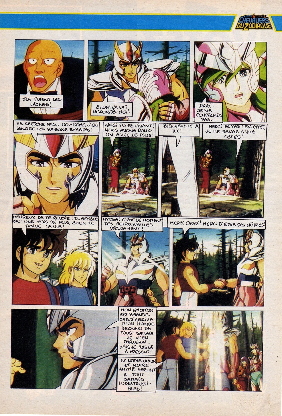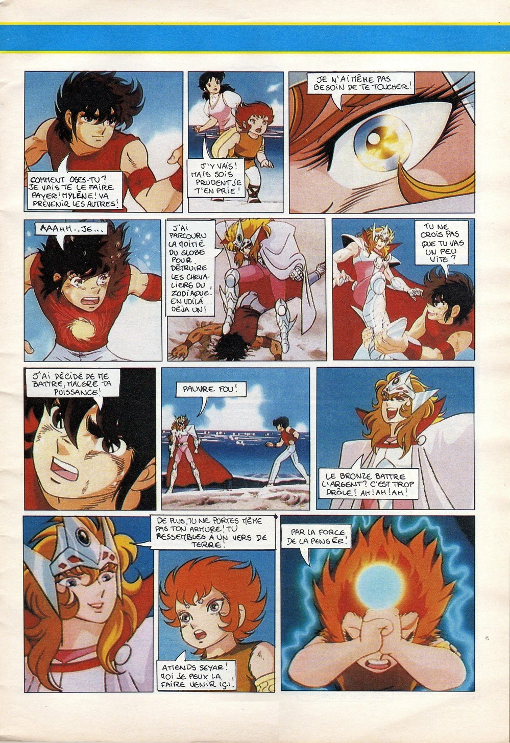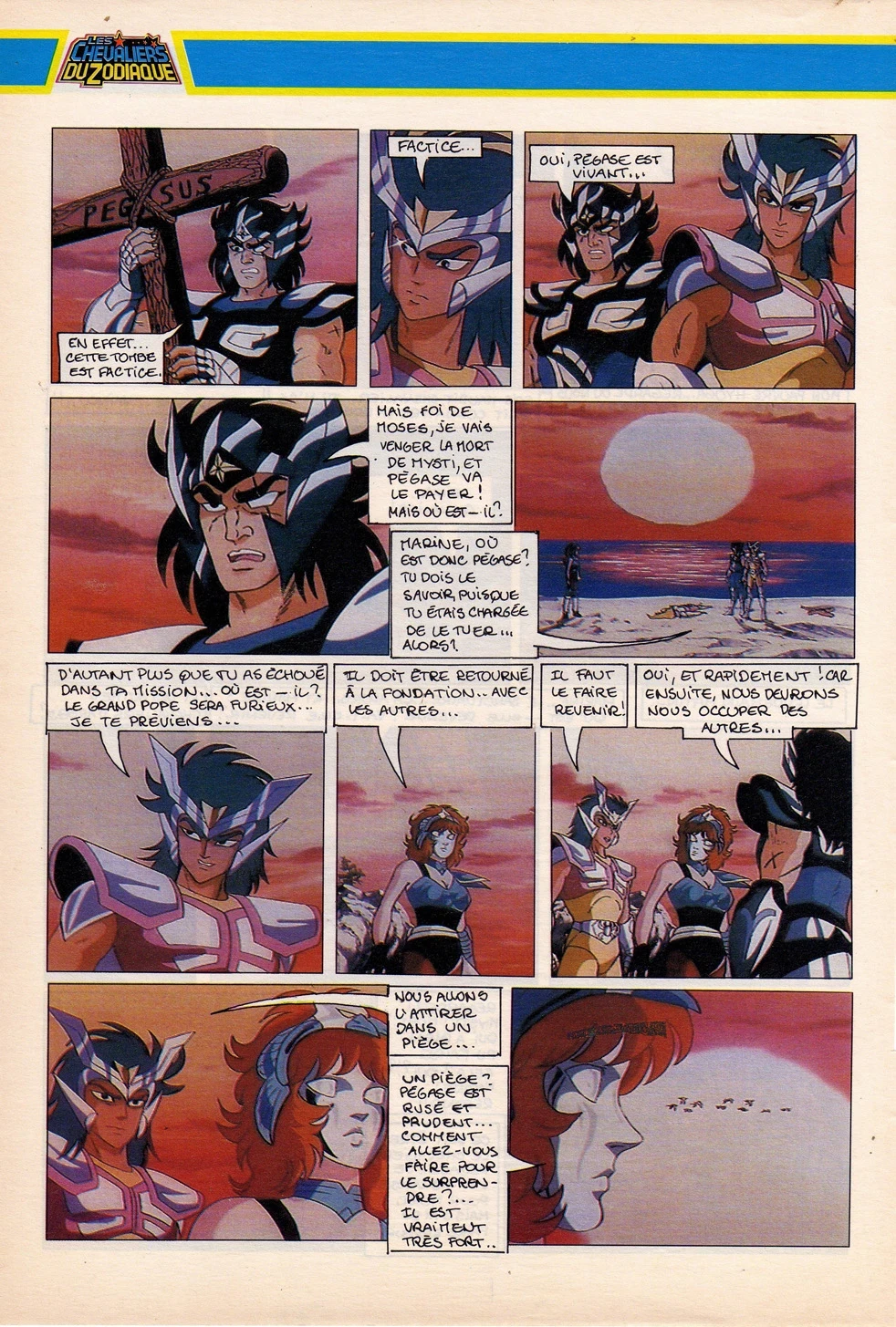 Puis le chevalier Ennetsu attaque Shun, Tatsumi et Saori, avant d’être vaincu par le chevalier du Phénix. Les deux derniers chapitres relatent les combats de Seiya contre Mysti du Lézard et Moses de la Baleine blanche. La dernière case prépare l’affrontement du chevalier de Pégase avec Astérion.