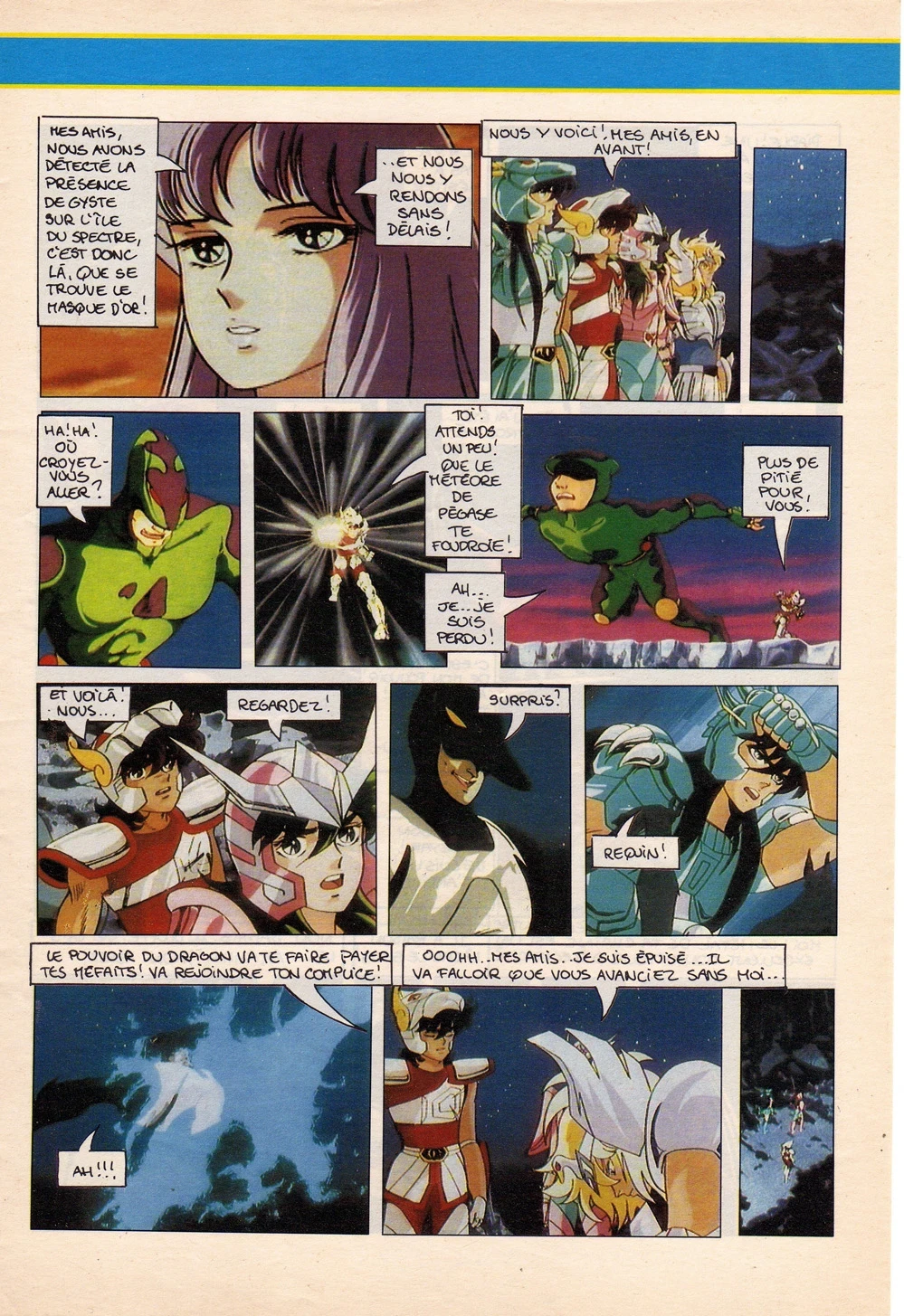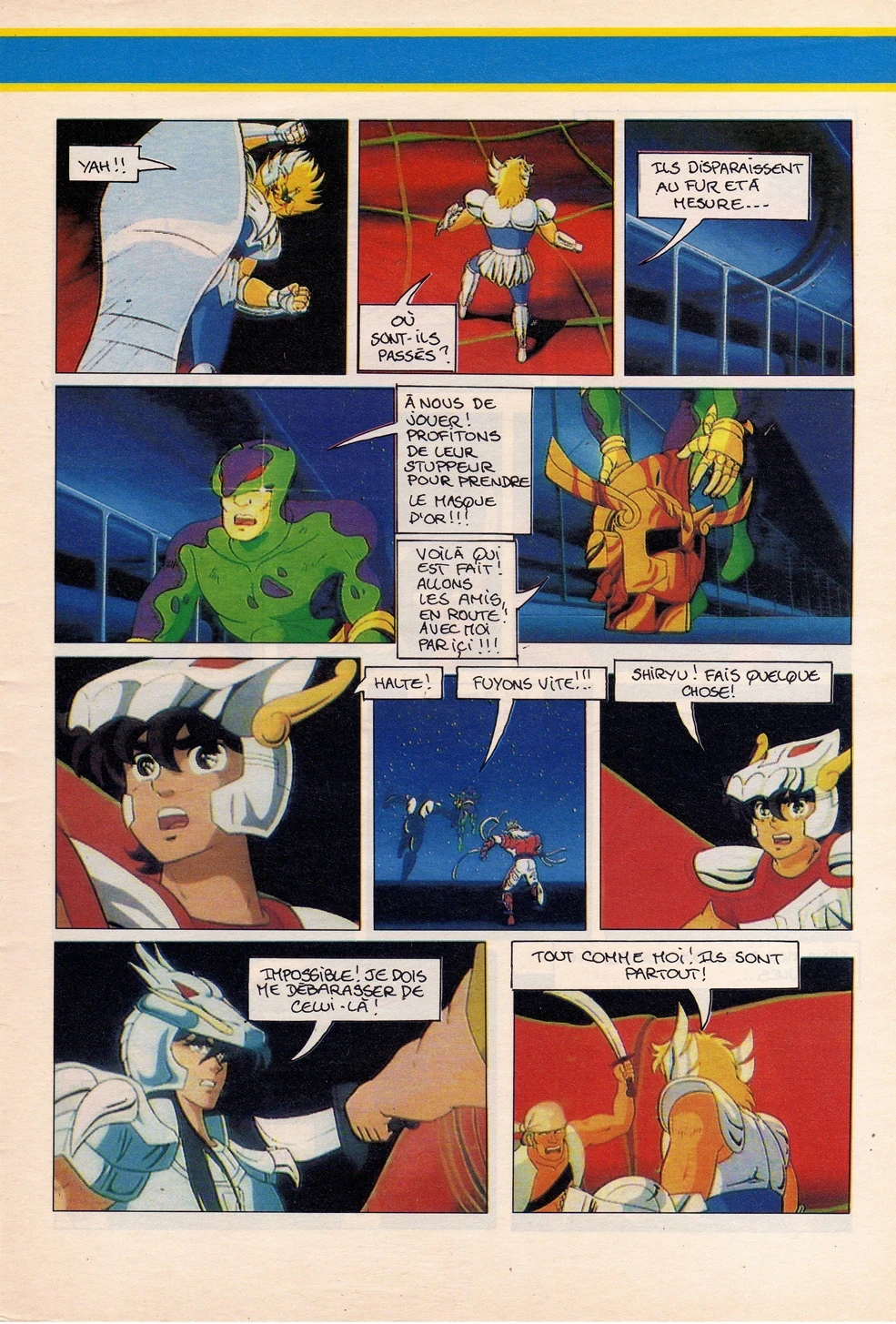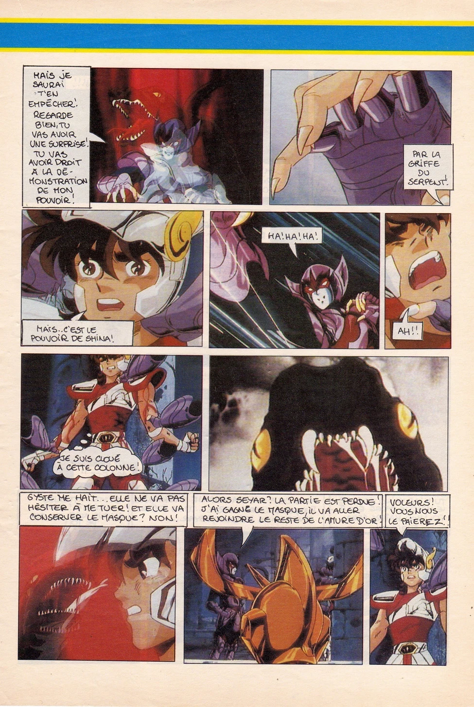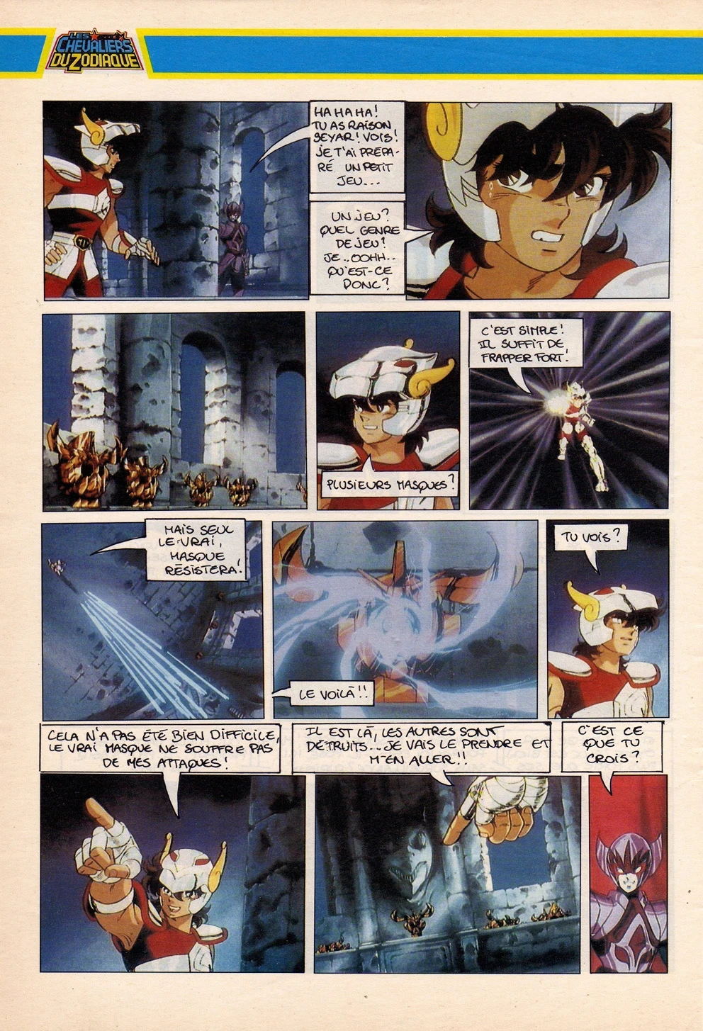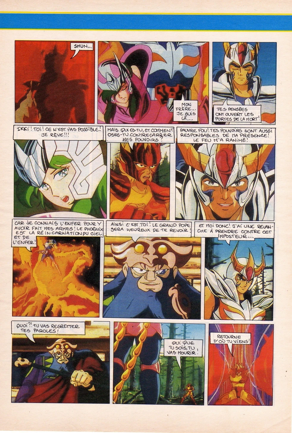 Puis le chevalier Ennetsu attaque Shun, Tatsumi et Saori, avant d’être vaincu par le chevalier du Phénix. Les deux derniers chapitres relatent les combats de Seiya contre Mysti du Lézard et Moses de la Baleine blanche. La dernière case prépare l’affrontement du chevalier de Pégase avec Astérion.