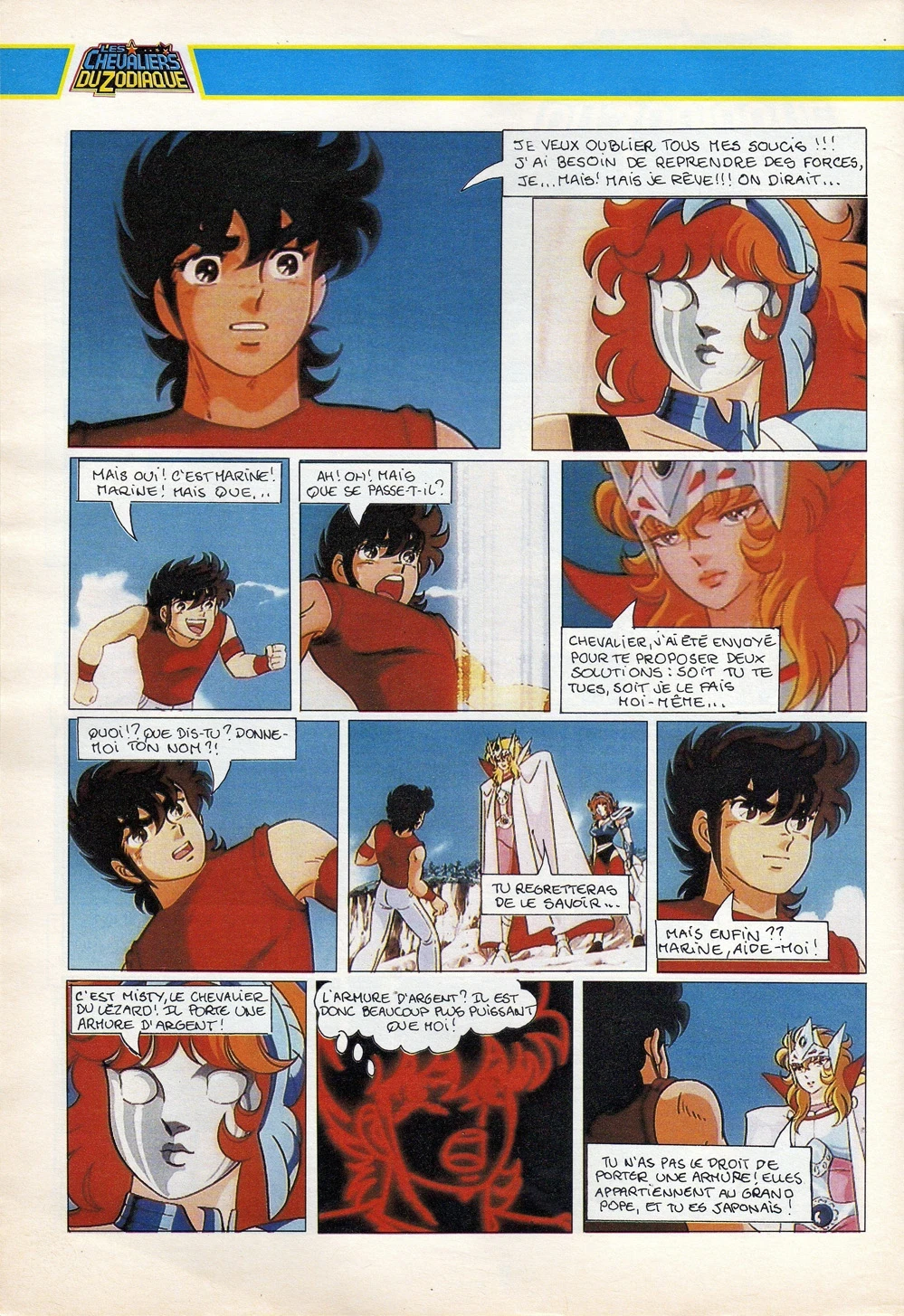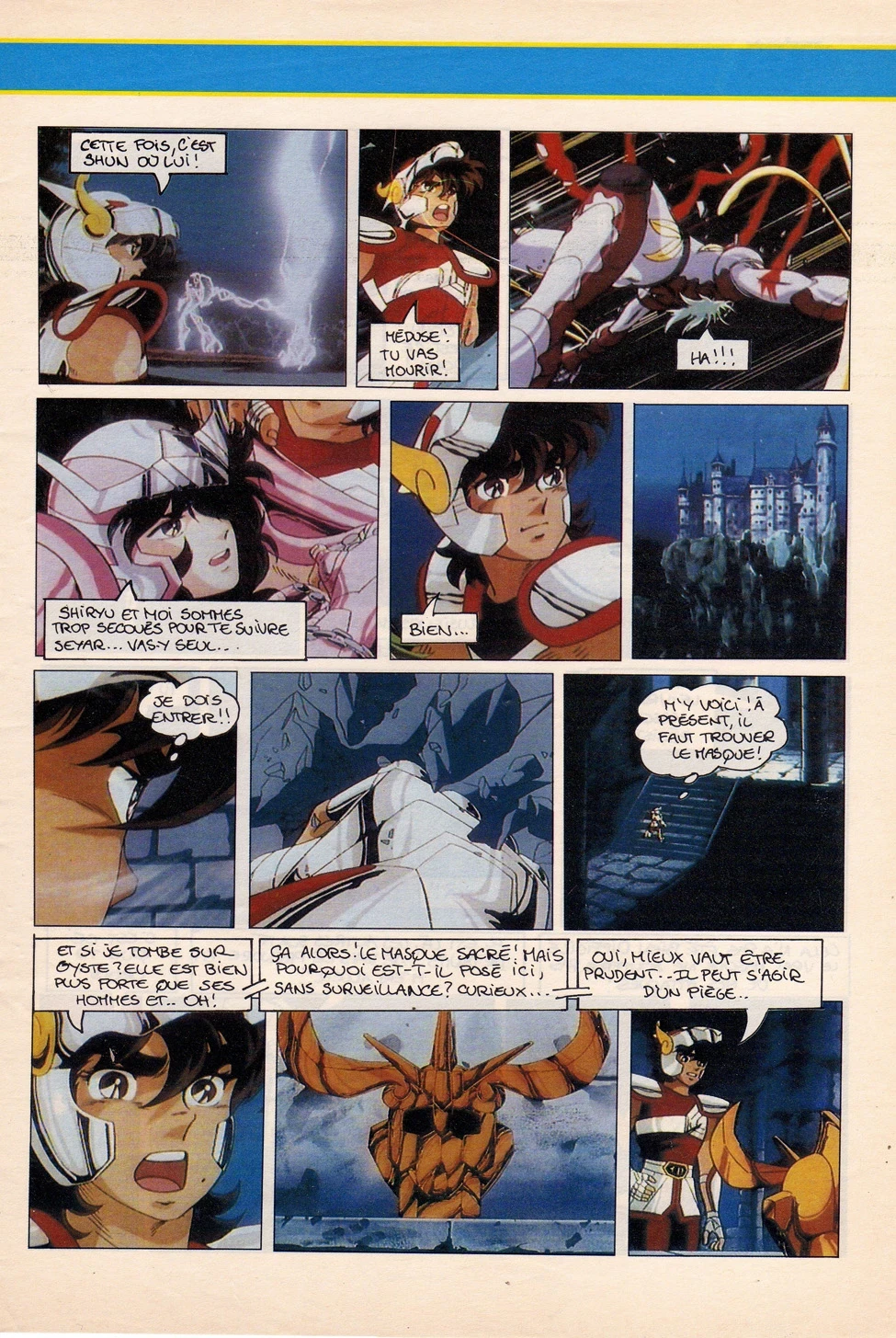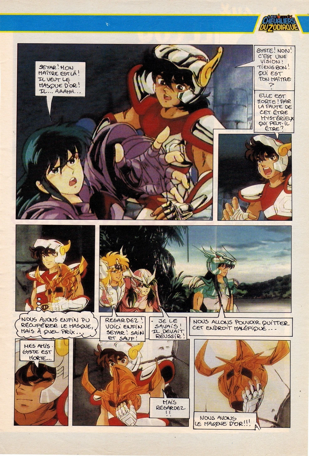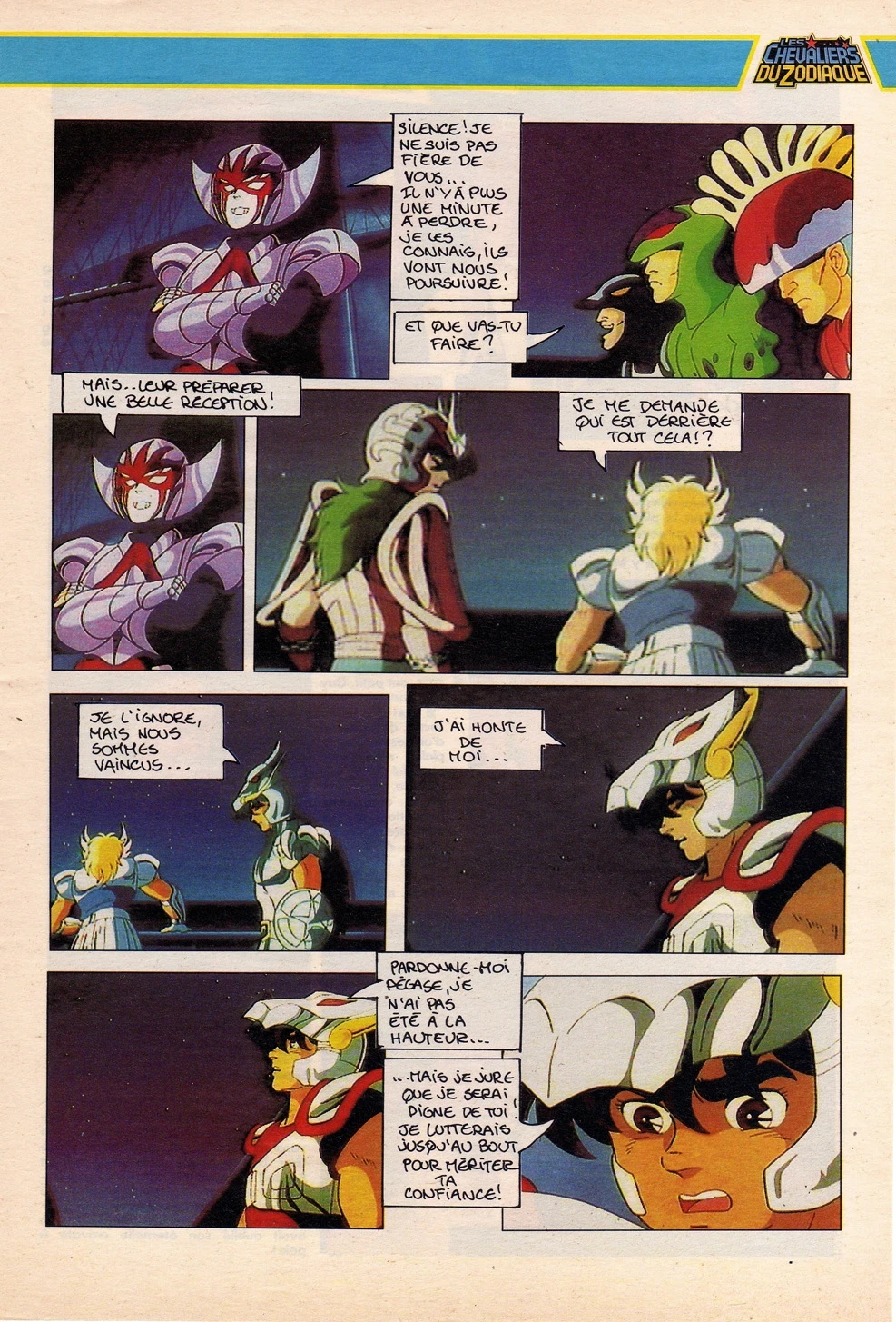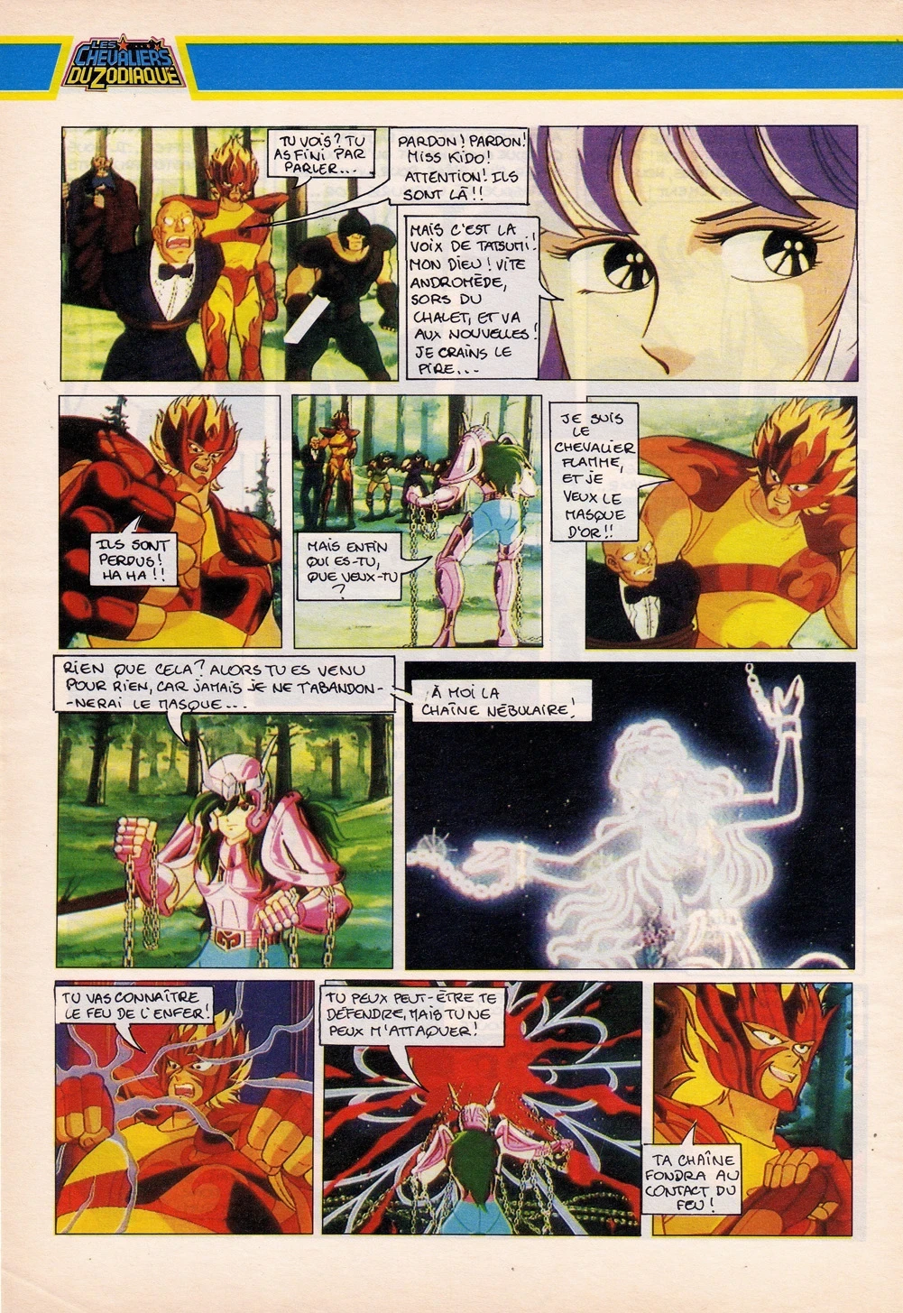 Puis le chevalier Ennetsu attaque Shun, Tatsumi et Saori, avant d’être vaincu par le chevalier du Phénix. Les deux derniers chapitres relatent les combats de Seiya contre Mysti du Lézard et Moses de la Baleine blanche. La dernière case prépare l’affrontement du chevalier de Pégase avec Astérion.